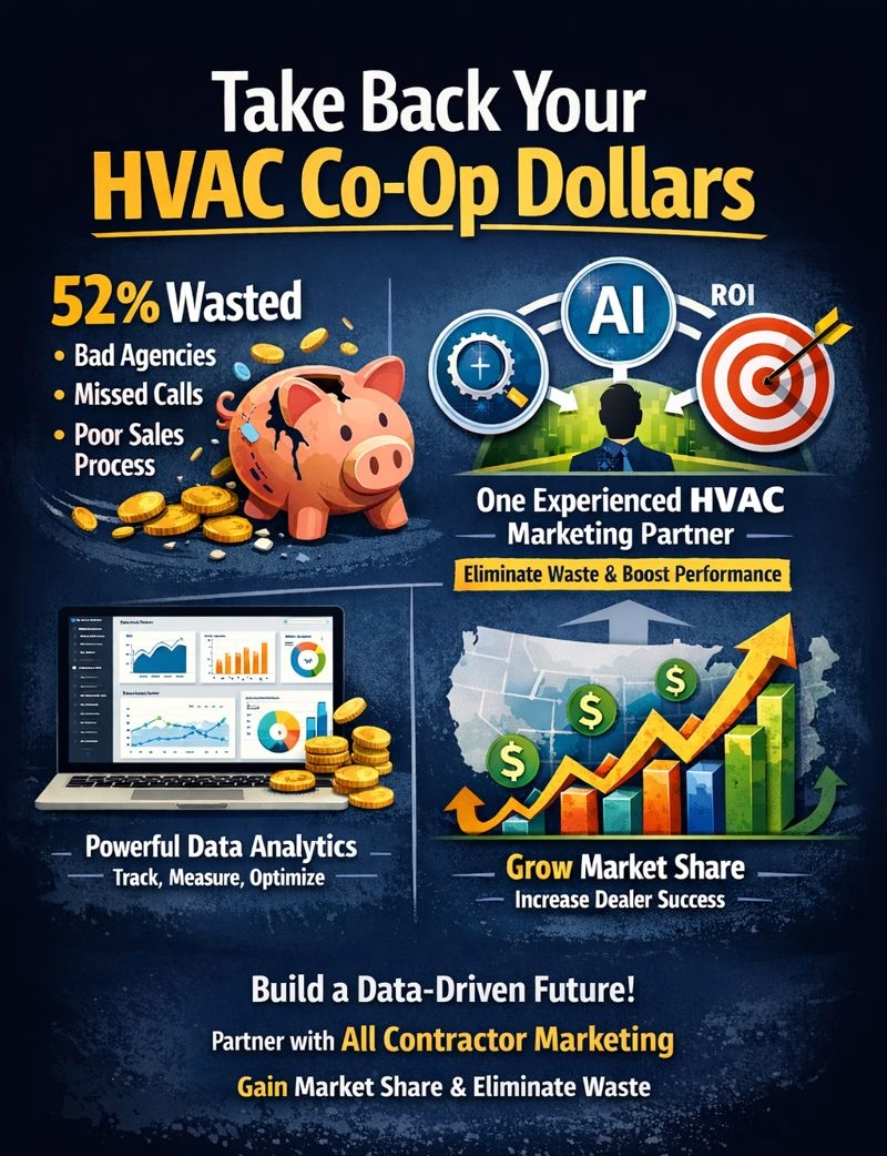 At All Contractor Marketing (ACM), we work with hundreds of HVAC businesses every year. We see behind the curtain of dealer marketing operations, from small family-owned companies to multi-location enterprises. What we see repeatedly is not malicious intent or negligence, but a systemic failure of experience, process, and data visibility—a failure that quietly wastes an estimated 52% of all HVAC co-op marketing dollars.