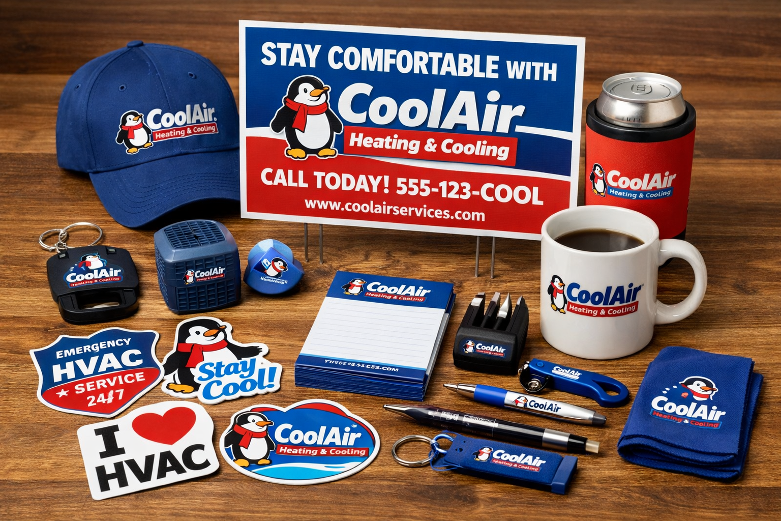 We understand that staying top-of-mind is key to building lasting customer relationships. That’s why we offer custom-branded HVAC merchandise designed specifically for contractors who want to make a lasting impression. From branded yard signs and stickers to tumblers, hats, magnets, and more, our promotional products help you stay visible long after the job is done. These high-quality, personalized items are perfect for celebrating completed installations, thanking customers for their business, promoting maintenance plans, or increasing referrals.